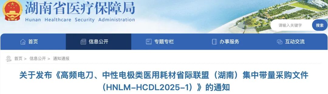 今日(12月17日),湖南医保局发布《高频电刀、中性电极类医用耗材省际联盟(湖南)集中带量采购文件》。