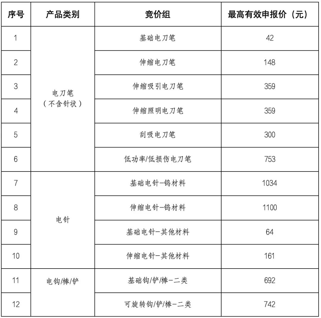 相较11月发布的征求意见稿,正式采购文件的竞价组从32个减至24个。例如基础电刀笔、伸缩电刀笔等均单独成组,不再区分有无涂层。